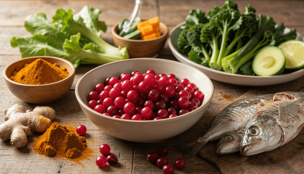 • Dieta Anti-inflamatória: Incluir alimentos ricos em antioxidantes, como frutas, vegetais e grãos integrais, pode ajudar a reduzir a inflamação.